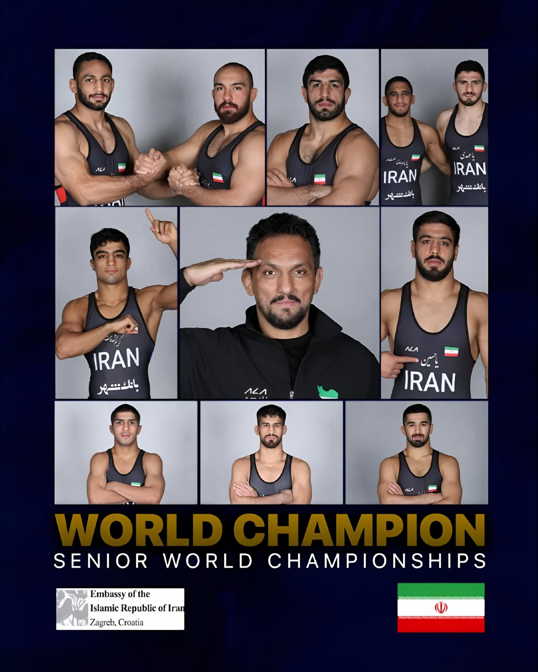 Čestitke plemenitoj naciji Irana i svim sportašima i tehničkom osoblju tima na osvajanju naslova svjetskog prvaka iranske nacionalne reprezentacije u hrvanju slobodnim stilom na Svjetskom prvenstvu u Zagrebu 2025. Iranska reprezentacija nakon 12 godina snažno je stala na tron svijeta osvojivši dvije zlatne, dvije srebrne i tri brončane medalje.